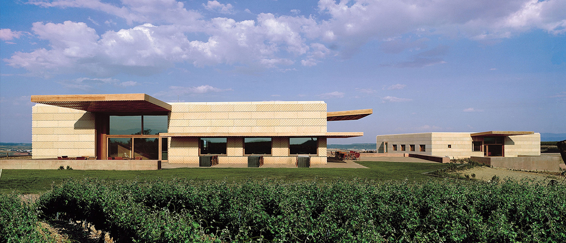 Na szczególną uwagę zasługuje budynek winnicy Campo Viejo, zaprojektowany według przyświecających marce ideałów. Monumentalny obiekt leży na płaskowyżu, w dolinie rzeki Ebro, wpisując się (dosłownie) w otaczający go krajobraz. Budynek zajmuje aż 45 tysięcy metrów kwadratowych, z których większość ukryta jest pod ziemią. Projektem zajęło się popularne hiszpańskie studio Ignacio Quemada Architects, specjalizujące się w dużych inwestycjach. Z zewnątrz to geometryczna, nowoczesna bryła, ubrana w prostą fakturę i ciepłe odcienie, nawiązujące do prawdziwie bajecznego otoczenia. Zwiedzanie obiektu zaczęliśmy od otwartej recepcji, prowadzącej zarówno do podziemi, biur, jak i dwóch widowiskowych tarasów. Proste, ażurowe zadaszenia delikatnie przepuszczają światło, wypychając na pierwszy plan malownicze, niekończące się pole. Zanim rozgościliśmy się tam na dłużej, sprawdziliśmy co kryją podziemia. To tam, w ciemnych i spokojnych przestrzeniach mieszczą się dziesiątki sal i hale, w których produkuje się i przechowuje wino w odpowiedniej temperaturze i wilgotności. Uporządkowane, potężne baryły, a także drewniane beczki i leżakujące już wino w butelkach mają idealną temperaturę, wentylację i klimat, osiągnięte w całkowicie naturalny sposób. Zgrana koncepcja architektoniczna i konsekwentnie zrealizowana wizja założycieli marki pokazują znaczenie i wartość tradycji oraz natury, która spotyka się z nowoczesnością.